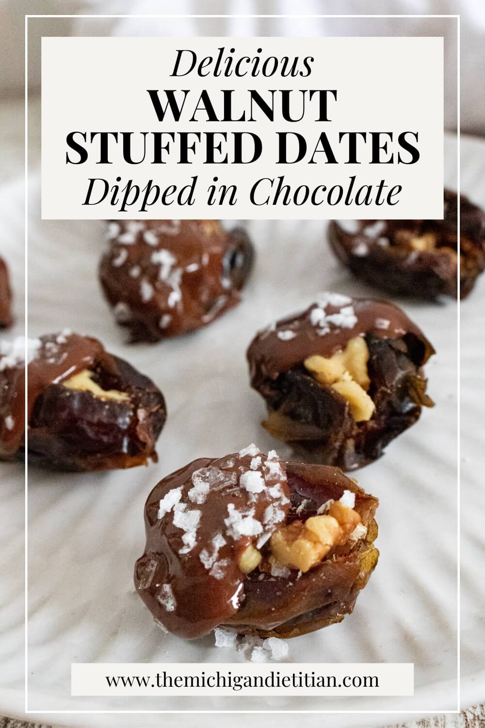 These walnut stuffed dates dipped in chocolate are the perfect sweet-salty treat. These walnut stuffed dates provide fiber, healthy fats, and natural sweetness for a more nourishing dessert.